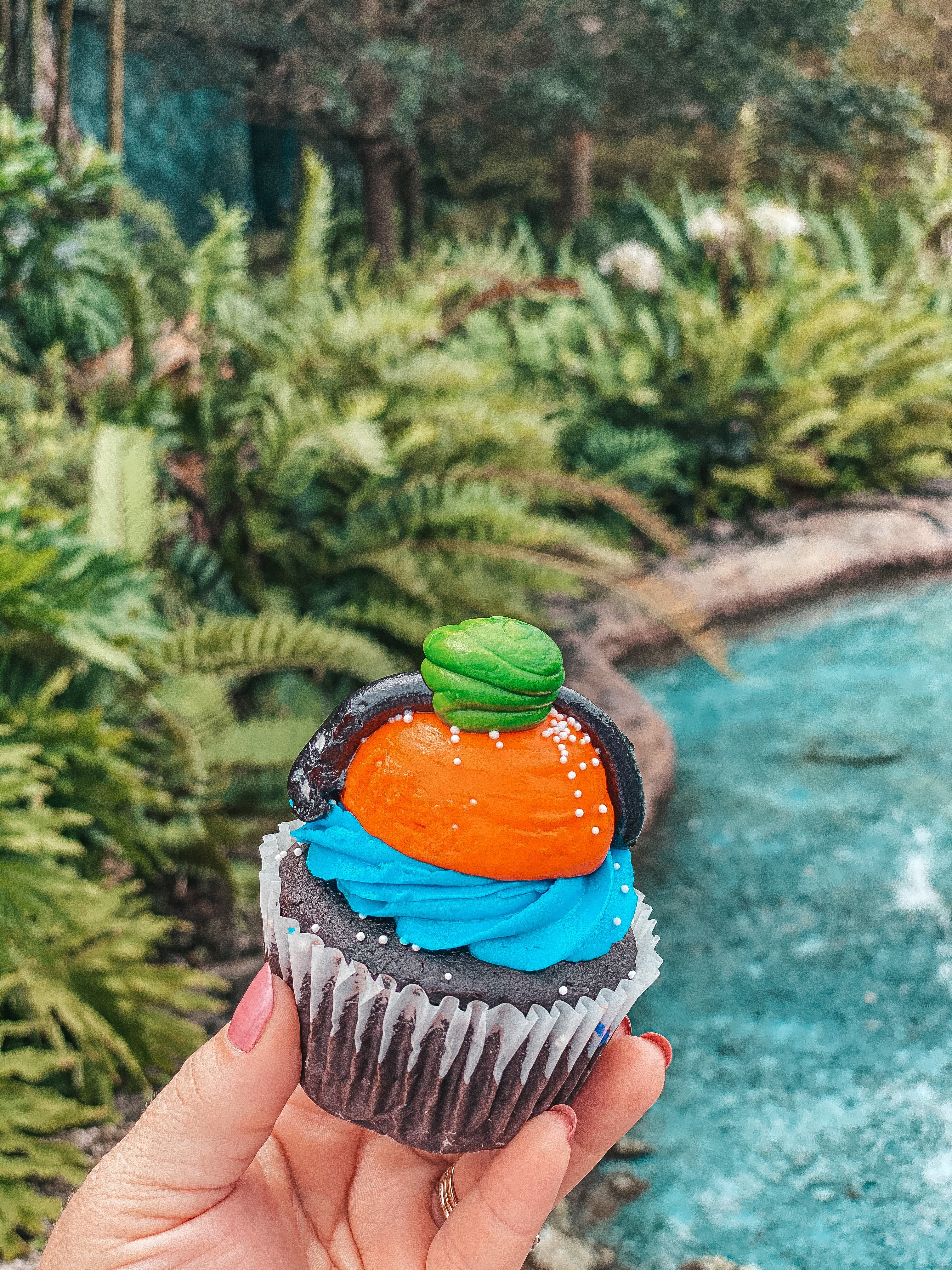 Sweet treats in the parks are often themed to match where you are. While in Galaxy’s Edge I stopped by the Milk Stand and shared blue and green milk with ” The Child “.