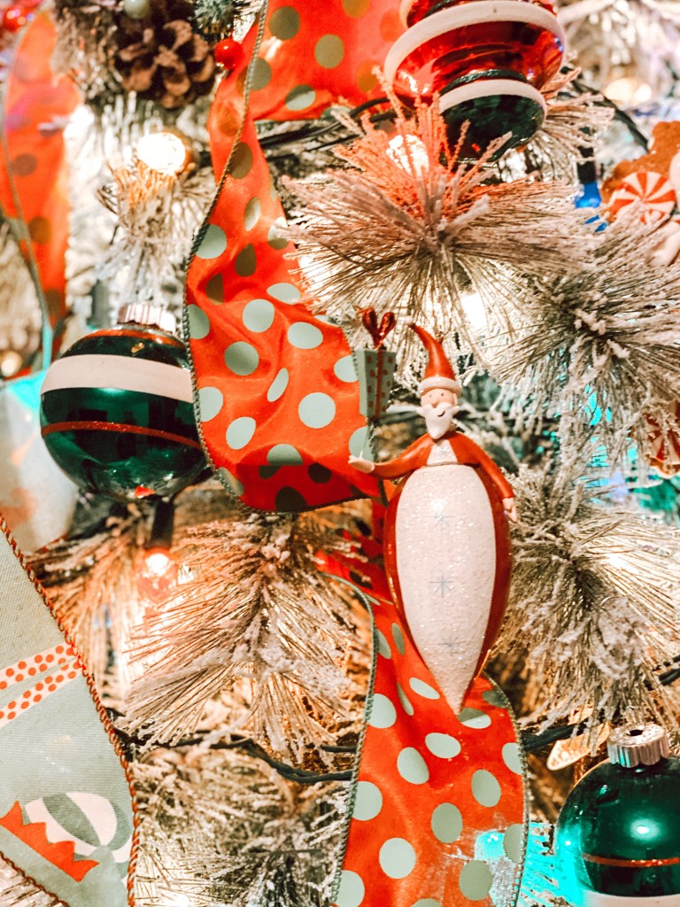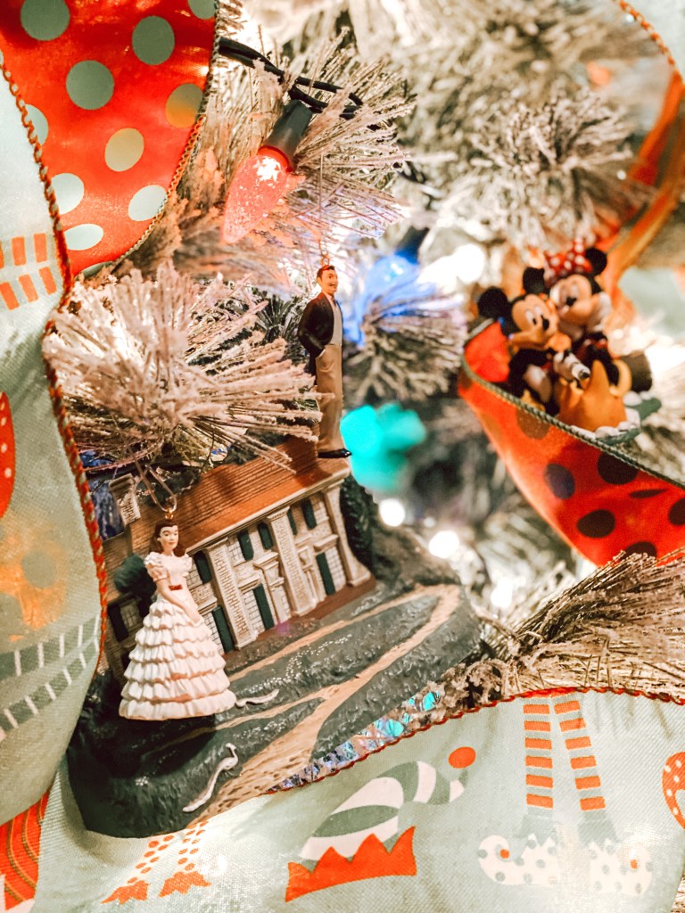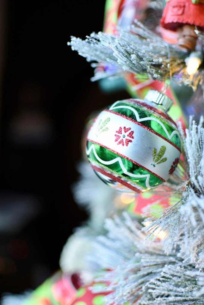 I would love to tell you where all the decor came from, but honestly, I cannot. Some of the Radko’s are from a little shop in Scottsboro, Alabama, a couple from Flat Rock, North Carolina, and still others from Snellville, Georgia. A few baubles came from a little local shop in Clinton, Iowa and a few from Rome, Georgia. The Shiny Brite’s are reproductions and I found them at HomeGoods. Some were gifts from special friends and family to mark occasions. I’ve had most items on this tree for fifteen years or more.