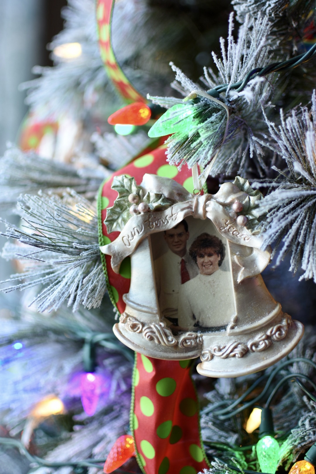 There is no uniform color or pattern to any of these ornaments, yet with a little ribbon, festive picks and colorful lights it all came together to form a beautiful tree that showcases our family’s story.