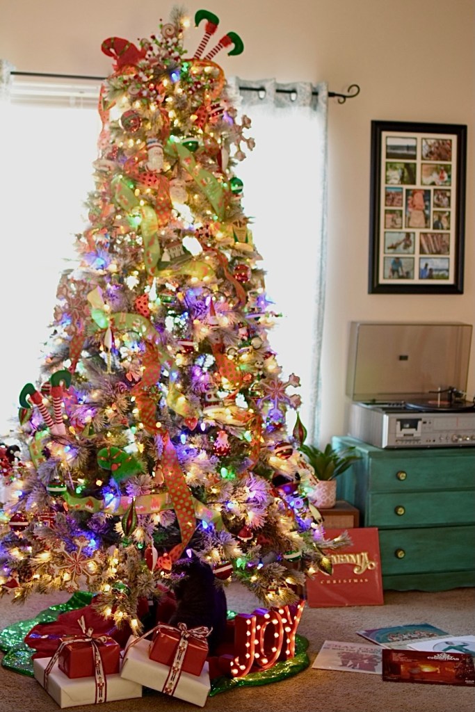 While this isn’t our main tree, it is in my favorite space, and definitely in a prominent location. My office is where I write, read and disappear for quiet time with a cup of coffee in the mornings. It’s where the music is located and the front room in the house.