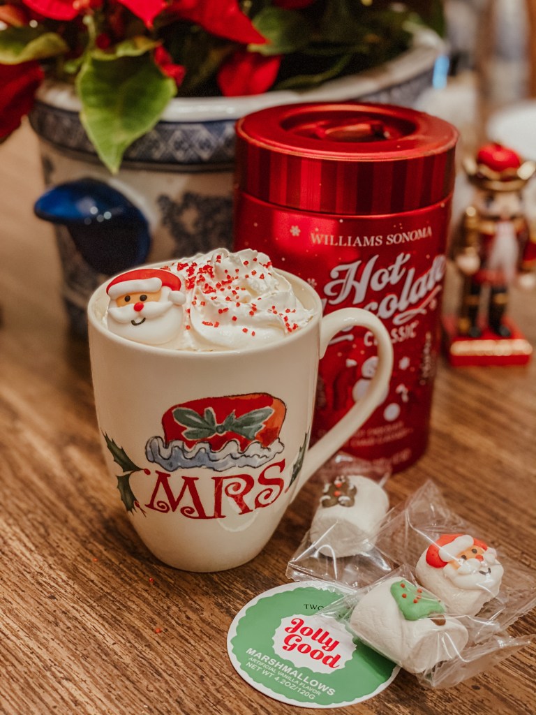 8. Set up a hot chocolate bar for the family. I’m absolutely loving these adorable Jolly Good marshmallows from Two’s Company. I picked up my bag from the new Buc-ees up the road, but you can also find something similar at Williams-Sonoma.