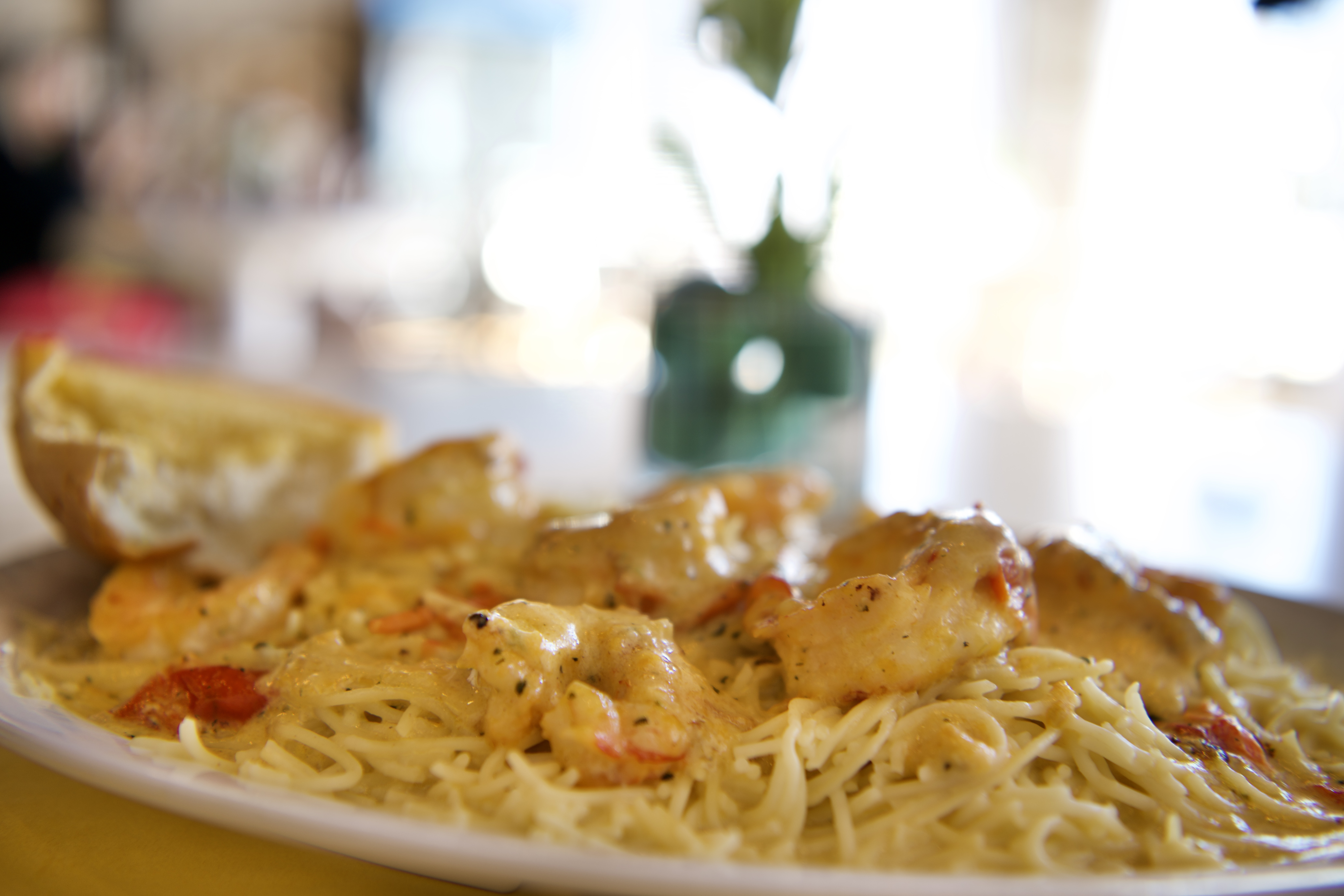 We each chose something different off of the menu for our main entree; I ordered Shrimp Scampi after hearing it was Chef Stacey’s favorite dish, and Audley ordered a crispy chicken sandwich.
