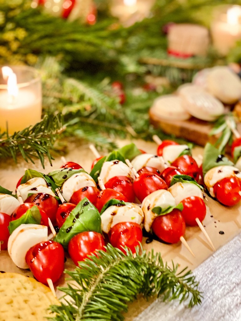 Finally, here are some easy ideas for a simple grazing table: Fresh fruit, nuts, pepperoni, salami (really any type of cured meat … uncured if you want to avoid unnecessary nitrates), small pickles, assorted cheeses, bread sticks, chocolate covered pretzels, cookies, crackers, chopped fresh veggies, caprese salad picks, and olives. To that add dips and mustards, and you’ve created a beautiful tablescape laden with colorful and tasty food. As long as you have a table filled with various flavors and textures, you can’t really go wrong.