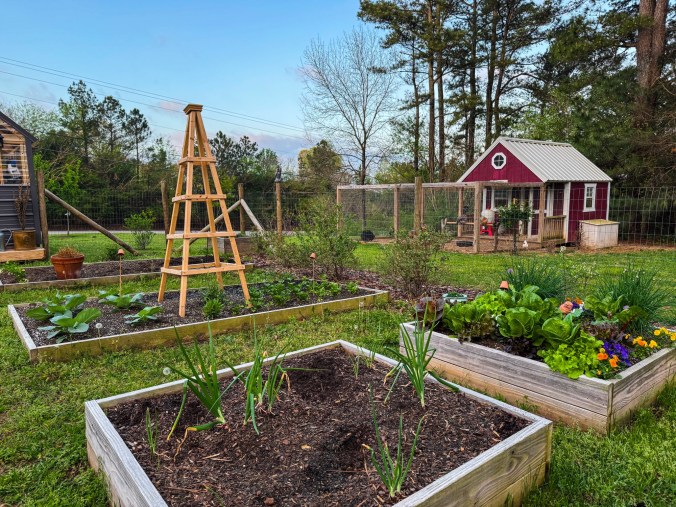 Before you get too far into planting, let’s talk about one of the most important garden tasks: feeding the soil. Healthy, nutrient-rich soil is the foundation of any thriving garden. Here in north Alabama, where chert rock thrives, amending the soil is an absolute must. It ensures your plants have the nutrients they need to grow strong and produce abundant harvests. We rely on Coast of Maine’s manure or lobster compost to add a powerhouse dose of nutrition to our garden beds. We also mix in some of our own compost, but since that pile is still a work in progress, store-bought options fill in the gaps. To further combat our challenging soil, we add high-quality garden soil like Fox Farms’ Happy Frog and organic topsoils; it’s an investment in our garden’s future. Feeding plants during this crucial stage helps them establish strong roots and sets them up for a season of success.