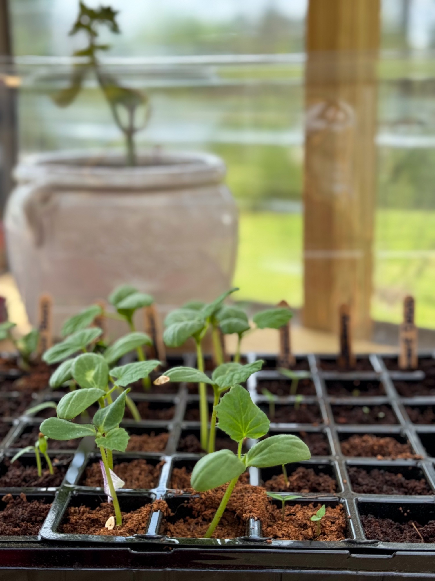 Let’s start with what’s happening in our greenhouse. This time of year, it’s a nursery with plant starts galore; everything from beans to cucumbers to tomatoes. Even our tropicals are waking up from their winter hibernation, stretching their leafy arms and preparing to head back outside. Watching everything come to life again is such a rewarding sight.