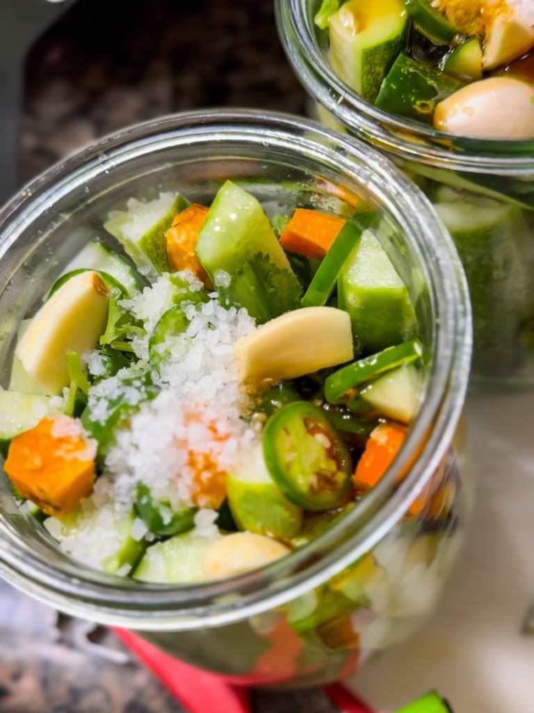 And then there are my herbs; a patchwork of scent and flavor: basil, dill, thyme, oregano, parsley, mint. They’ve weathered the rain surprisingly well, and we snip them regularly for preserving, sauces, and to toss into whatever’s cooking on the stove.
