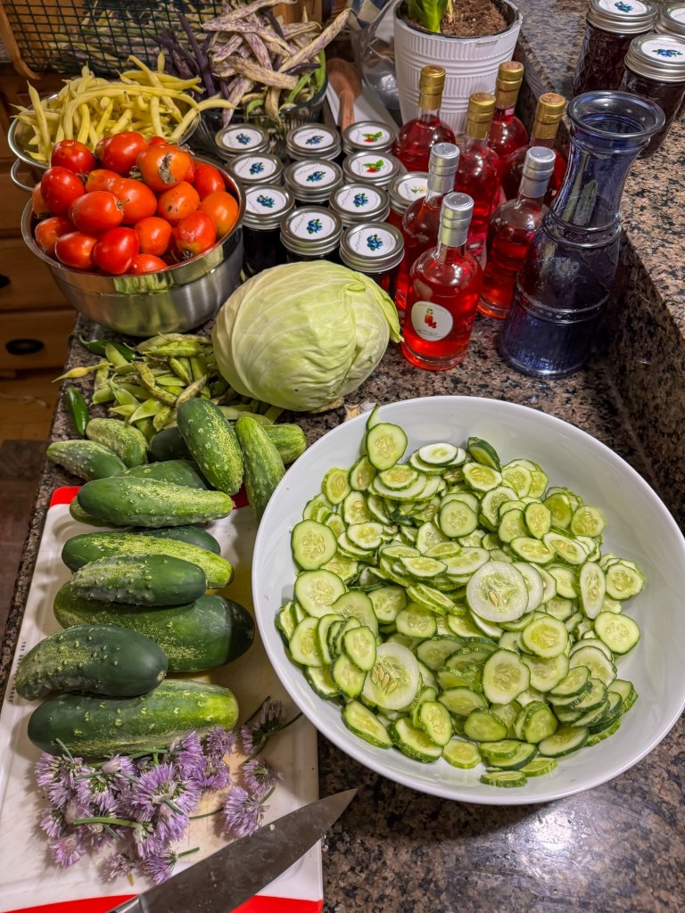 It hasn’t been an easy summer season … too wet, too hot, too many bugs, but somehow, we’re able to enjoy the garden. Still cooking. Still grateful. The raised beds, the early mornings, the long evenings, Captain Jack’s Organic Bug Dust, they’ve all helped us keep things going.