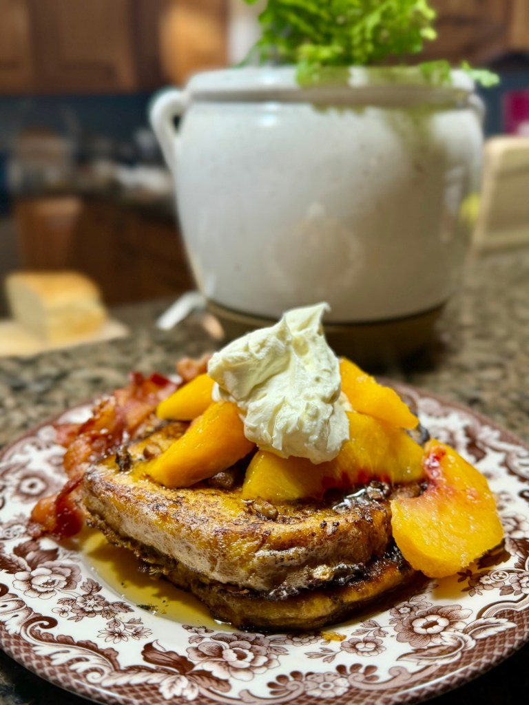 • buffalo chicken lettuce wraps with a rich, unapologetically creamy blue cheese dressing •scrumptious French toast made from the last remnants of a homemade loaf of bread, topped with peaches I preserved last summer